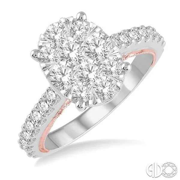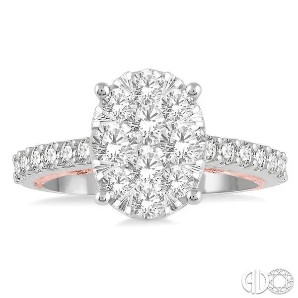 1 1/2 Ctw Oval Shape Lovebright Round Cut Diamond Ring in 14K White and Rose Gold Becker's Jewelers Burlington, IA