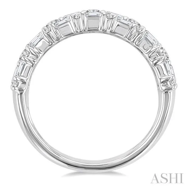 (319) 752-31961 1/2 Ctw Triple Row Emerald, Baguette and Round Cut Diamond Fashion Band in 14K White Gold