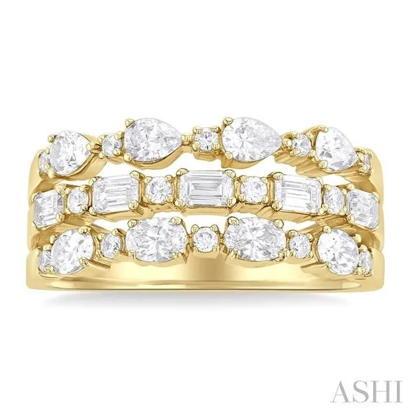 1 1/2 Ctw Triple Row Multi-Cut Diamond Fashion Band in 14K Yellow Gold Image 2 Becker's Jewelers Burlington, IA