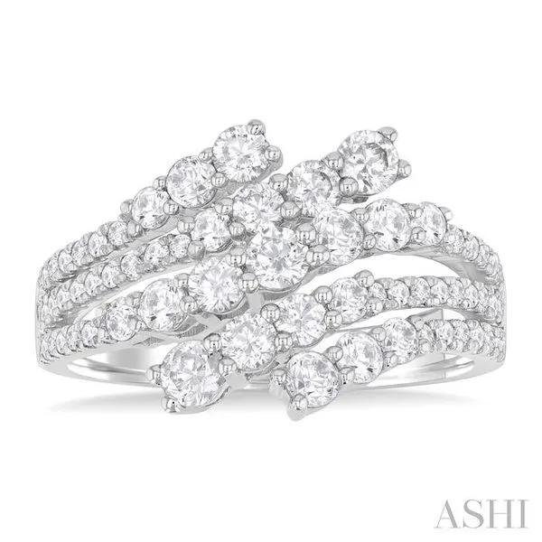 (319) 752-31961 1/2 Ctw Triple Split Wide Bypass Round Cut Diamond Fashion Ring in 14K White Gold