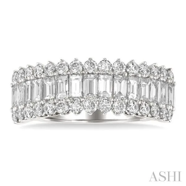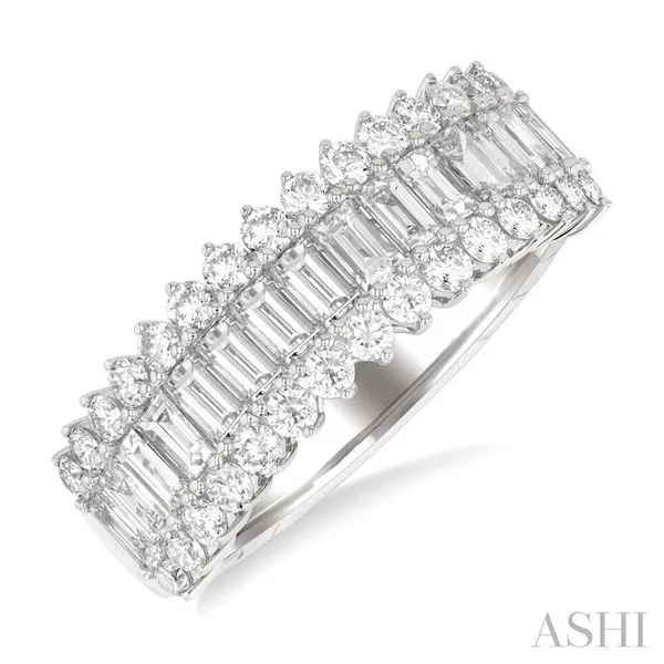 (319) 752-31961 1/2 Ctw Wide Baguette and Round Cut Diamond Fashion Band in 14K White Gold