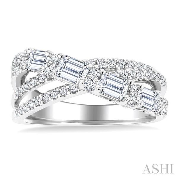 3. 1 1/4 Ctw Emerald and Round Cut Diamond Split Crossover Fashion Ring in 14K White Gold