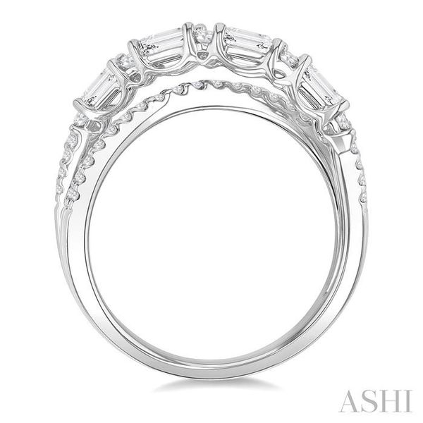 1 1/4 Ctw Emerald and Round Cut Diamond Split Crossover Fashion Ring in 14K White Gold Image 3 Becker's Jewelers Burlington, IA