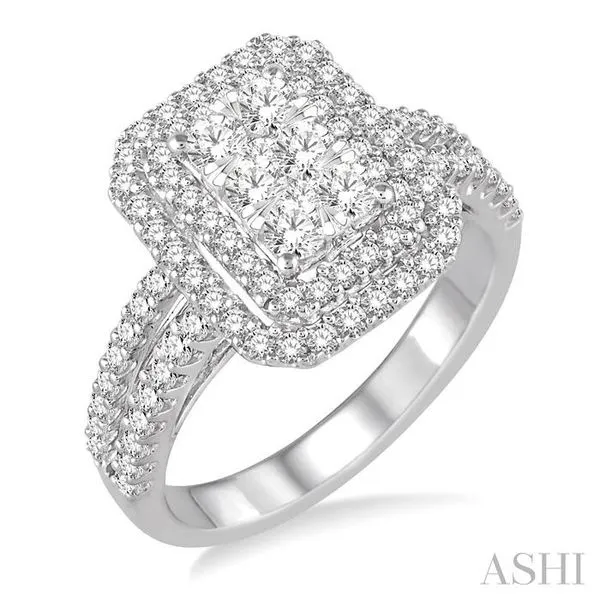 (319) 752-31961 1/4 Ctw Round Cut Diamond Octagon Shape Lovebright Ring in 14k White Gold