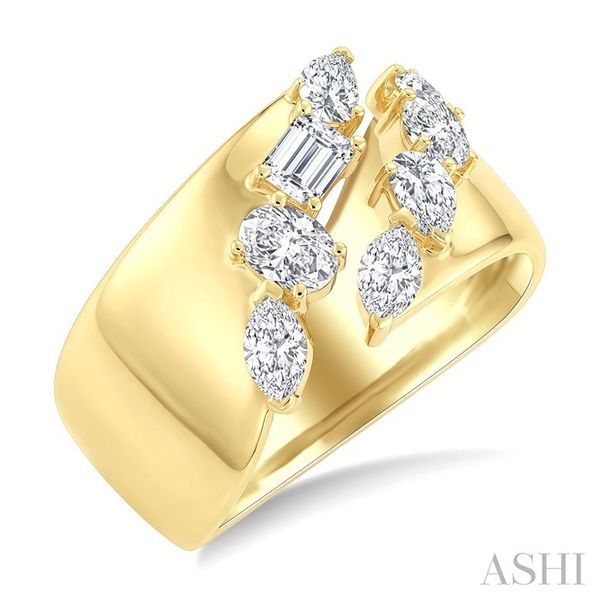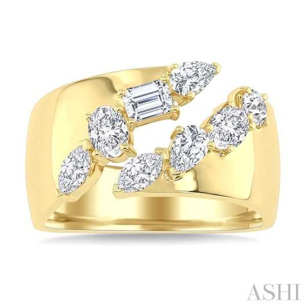 1 1/4 Ctw Slanted Split Mixed Diamond Cut Fashion Wide Band in 14K Yellow Gold Image 2 Becker's Jewelers Burlington, IA