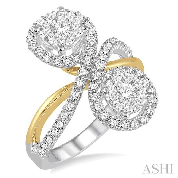 1 1/6 Ctw Two Tone Spiral Split Shank Round Cut Diamond Lovebright 2Stone Ring in 14K White and Yellow Gold Image 3 Becker's Jewelers Burlington, IA