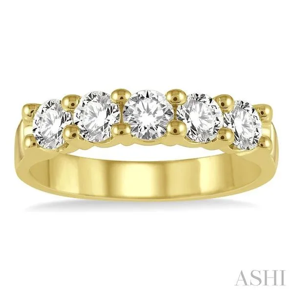 (319) 752-31961 Ctw 5 Stone Round Cut Diamond Wedding Band in 14K Yellow Gold