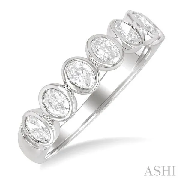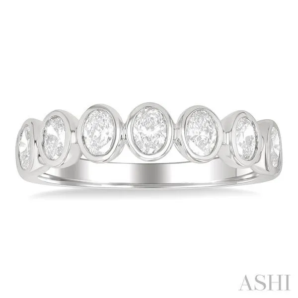 (319) 752-31961 Ctw 7-Stone Bezel Set Oval Cut Diamond Fashion Band in 14K White Gold