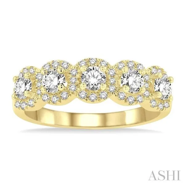 (319) 752-31961 Ctw Circular Shape 5 Stone Round Cut Diamond Halo Wedding Band in 14K Yellow Gold