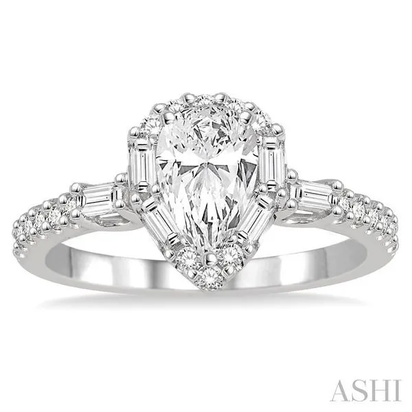 (319) 752-31961 Ctw Diamond Engagement Ring with 1/2 Ct Pear cut Center Stone in 14K White Gold