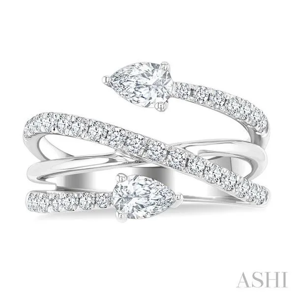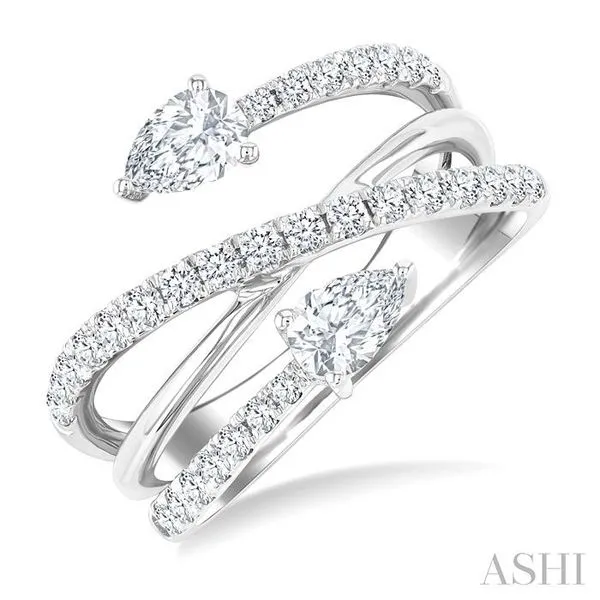 (319) 752-31961 Ctw East West Pear and Round Cut Diamond Split Open-End Fashion Ring in 14K White Gold