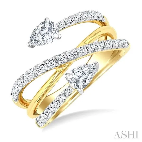 (319) 752-31961 Ctw East West Pear and Round Cut Diamond Split Open-End Fashion Ring in 14K Yellow Gold