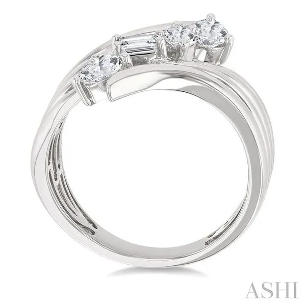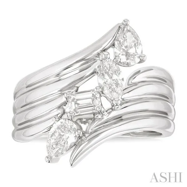 (319) 752-31961 Ctw Open Bypass Ribbed Shank Mixed Diamond Cut Fashion Ring in 14K White Gold