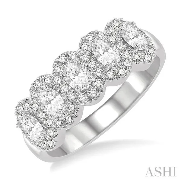 (319) 752-31961 Ctw Oval Shape 5 Stone Oval & Round Cut Diamond Halo Wedding Band in 14K White Gold