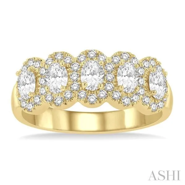 (319) 752-31961 Ctw Oval Shape 5 Stone Oval & Round Cut Diamond Halo Wedding Band in 14K Yellow Gold