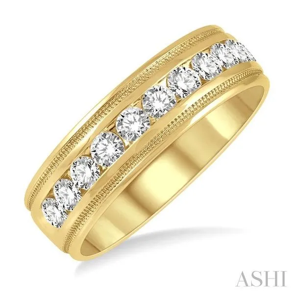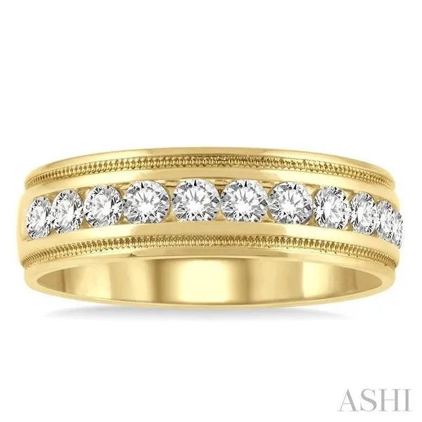 (319) 752-31961 Ctw Parallel Milgrain & Niched Center Round Cut Diamond Men's Wedding Band in 14K Yellow Gold