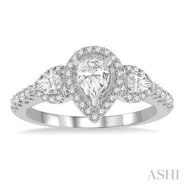 (319) 752-31961 Ctw Past, Present & Future Round Cut Diamond Engagement Ring With 3/8 Ct Pear Cut Center Stone in 14K White Gold