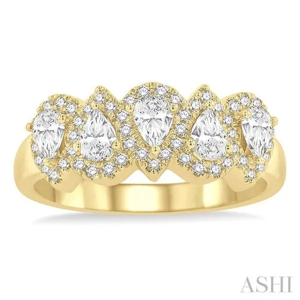 (319) 752-31961 Ctw Pear Shape 5 Stone Pear & Round Cut Diamond Halo Wedding Band in 14K Yellow Gold
