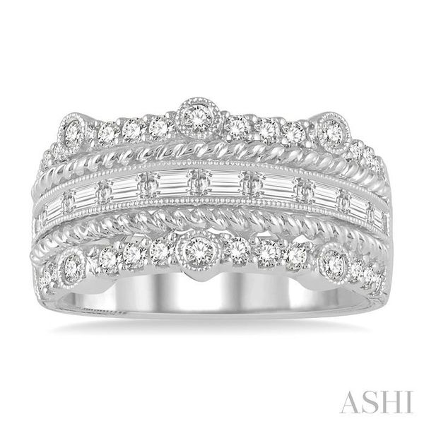1 Ctw Round Cut and Baguette Diamond Wedding Band in 14K White Gold Image 2 Becker's Jewelers Burlington, IA