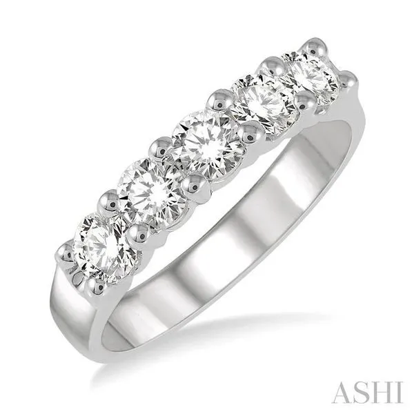 (319) 752-31961 Ctw Round Cut Diamond 5 Stone Wedding Band in 14K White Gold