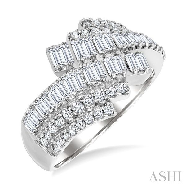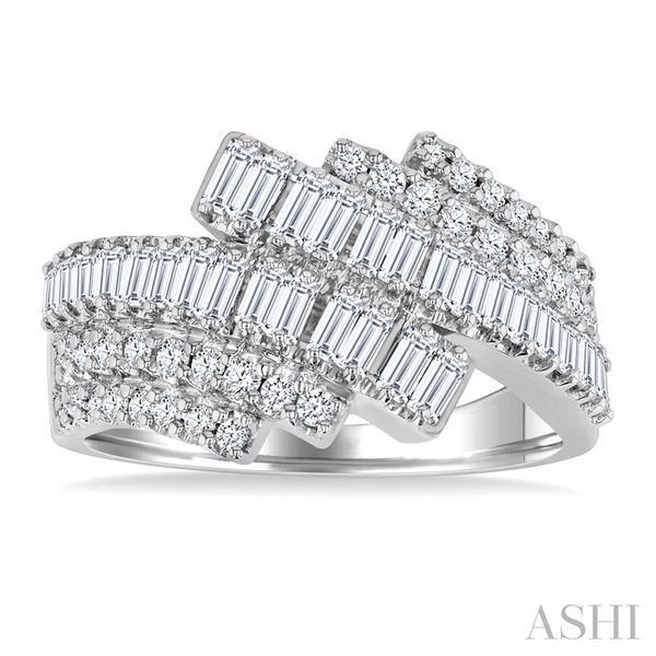 1 Ctw Triple Row Bypass Fusion Baguette and Round Cut Diamond Fashion Ring in 14K White Gold Image 2 Becker's Jewelers Burlington, IA