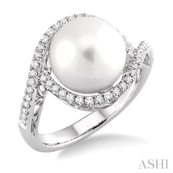(319) 752-319611 MM Cultured Pearl and 1/3 Ctw Round Cut Diamond Ring in 14K White Gold