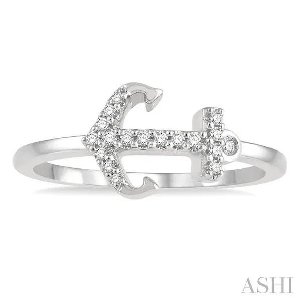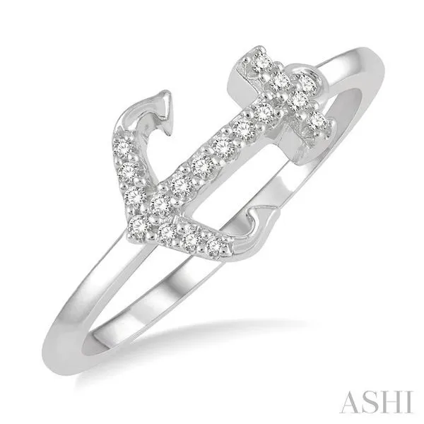 (319) 752-31961/10 Ctw Anchor Charm Round Cut Diamond Petite Fashion Ring in 10K White Gold