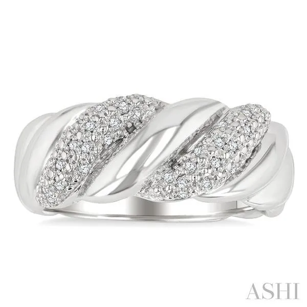 (319) 752-31961/10 Ctw Bold Ribbed Swirl Single Cut Diamond Bold Fashion Band in Sterling Silver