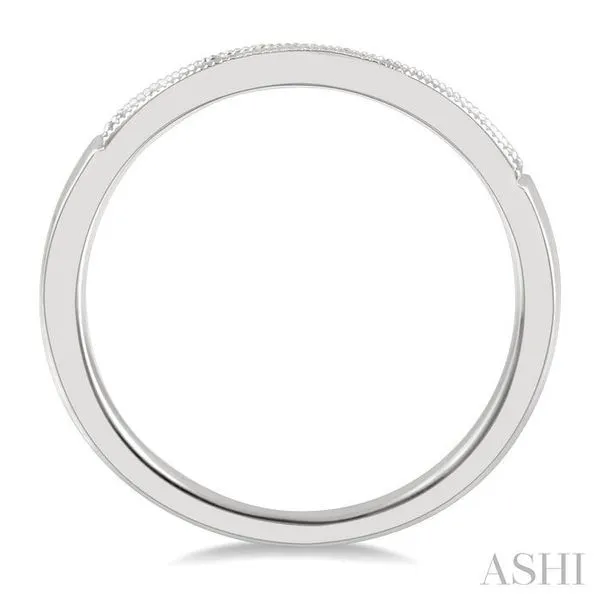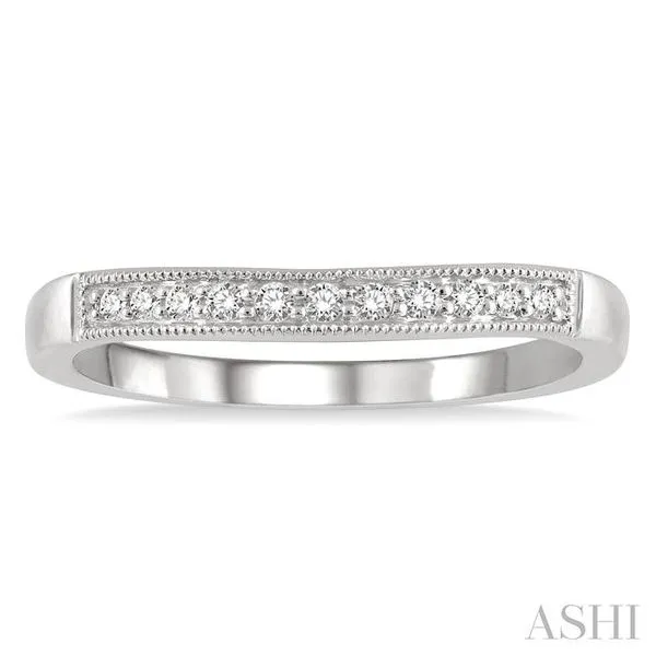 (319) 752-31961/10 Ctw Curved Center Milgrain Border Round Cut Diamond Wedding Band in 14K White Gold