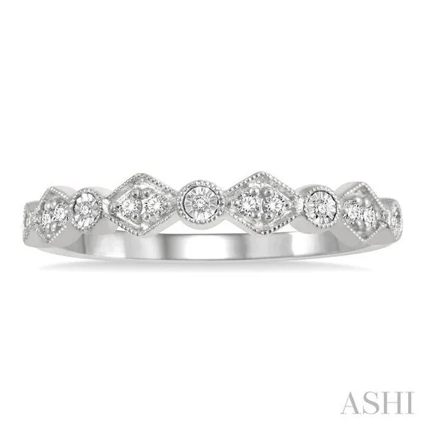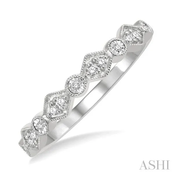(319) 752-31961/10 Ctw Fused Diamond and Circular Shape Mount Round Cut Diamond Stack Band in 14K White Gold