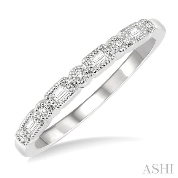 1/10 Ctw Lattice Baguette and Round Cut Diamond Stackable Band in 14K White Gold Image 2 Becker's Jewelers Burlington, IA