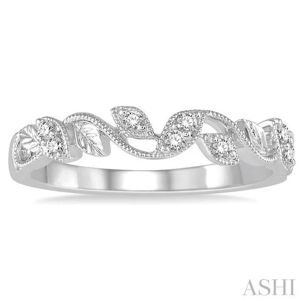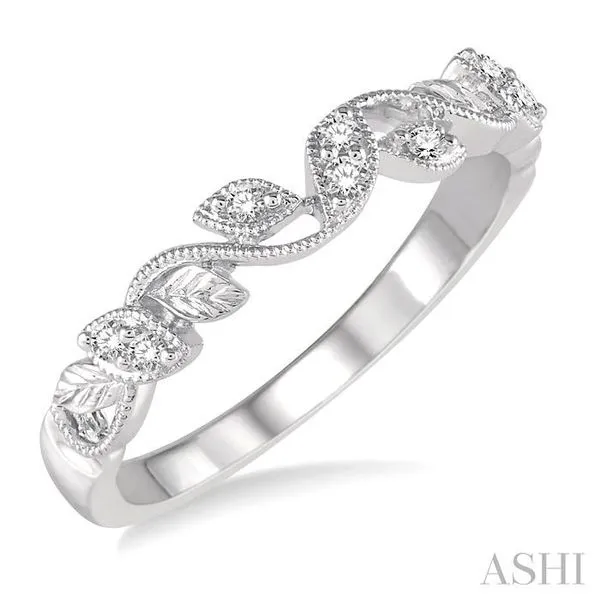 (319) 752-31961/10 Ctw Leaf Motif Round Cut Diamond Wedding Band in 14K White Gold