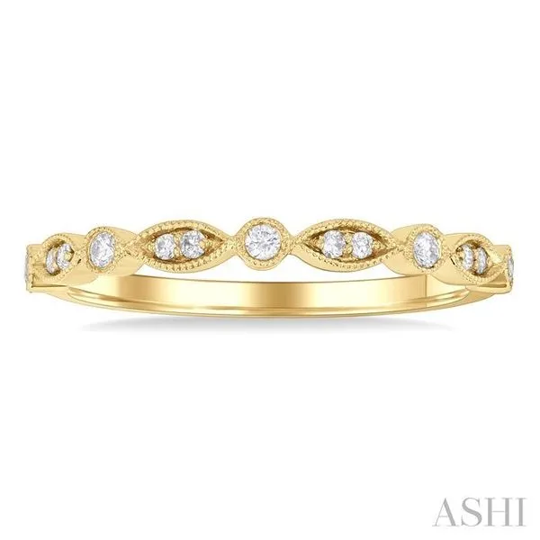 (319) 752-31961/10 Ctw Marquise and Circular Motif Carved Round Cut Diamond Stackable Wedding Band in 14K Yellow Gold