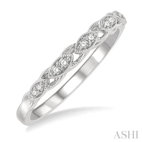 (319) 752-31961/10 Ctw Marquise Shape Lattice Round Cut Diamond Wedding Band in 14K White Gold