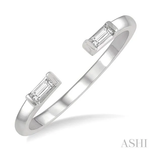 (319) 752-31961/10 Ctw Open Center Petite Baguette Diamond Stackable Ring in 10K White Gold