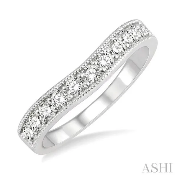 (319) 752-31961/2 Ctw Arched Round Cut Diamond Wedding Band in 14K White Gold