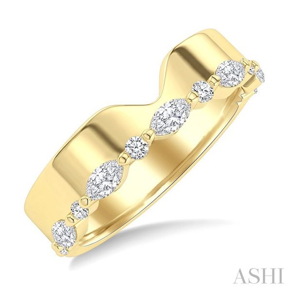 1/2 Ctw Bold V-Shaped Center Marquise and Round Cut Diamond Fashion Band in 14K Yellow Gold Image 2 Becker's Jewelers Burlington, IA