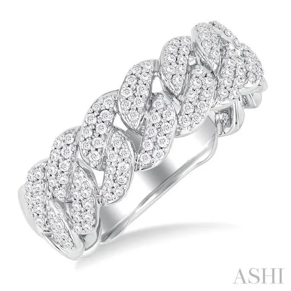 (319) 752-31961/2 Ctw Cuban Link Round Cut Diamond Fashion Band in 14K White Gold