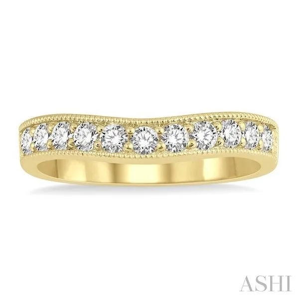(319) 752-31961/2 Ctw Curved Center Milgrain Border Round Cut Diamond Wedding Band in 14K Yellow Gold
