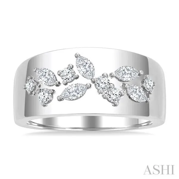 (319) 752-31961/2 Ctw Marquise and Round Cut Diamond Fashion Wide Band in 14K White Gold