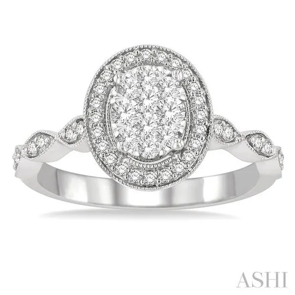 1/2 Ctw Oval Mount Criss Cross Shank Lovebright Round Cut Diamond Engagement Ring in 14K White Gold