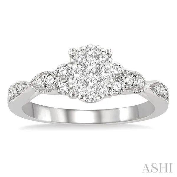 1/2 Ctw Oval Shape Center Criss Cross Carved Shank Lovebright Round Cut Diamond Engagement Ring in 14K White Gold Becker's Jewelers Burlington, IA