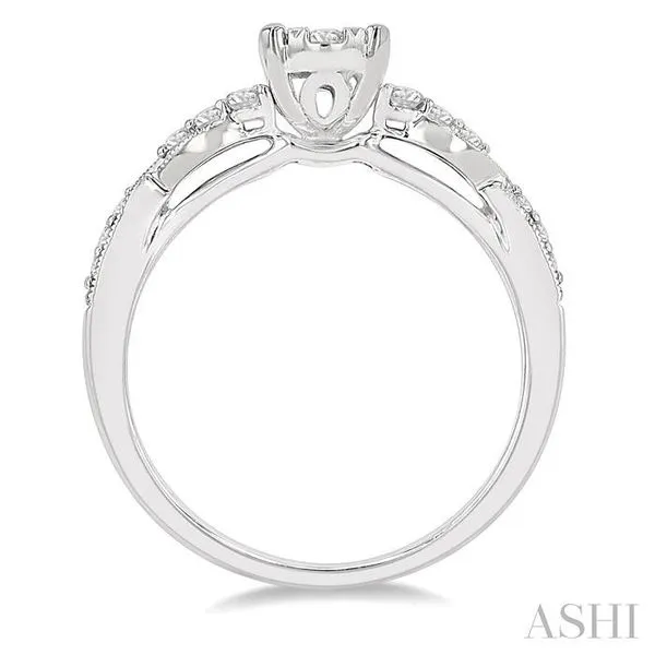 1/2 Ctw Oval Shape Center Criss Cross Carved Shank Lovebright Round Cut Diamond Engagement Ring in 14K White Gold Image 3 Becker's Jewelers Burlington, IA