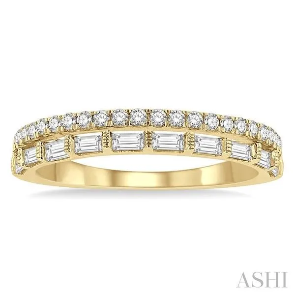 (319) 752-31961/2 Ctw Parallel Row Baguette and Round Cut Diamond Stackable Fashion Band in 14K Yellow Gold