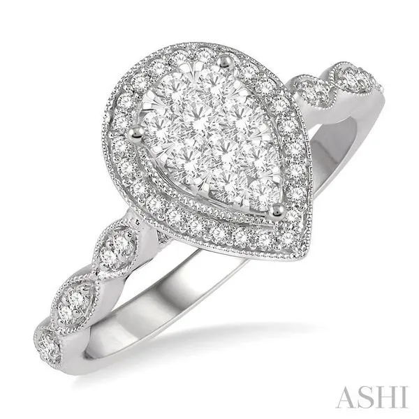 1/2 Ctw Pear Shape Mount Marquise Shank Lovebright Round Cut Diamond Ring in 14K White Gold Image 2 Becker's Jewelers Burlington, IA