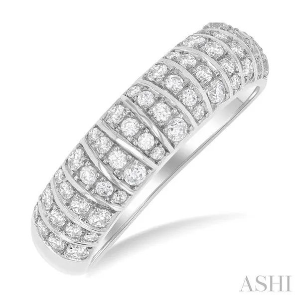 (319) 752-31961/2 Ctw Ribbed Dome Shape Round Cut Diamond Fashion Ring in 14K White Gold