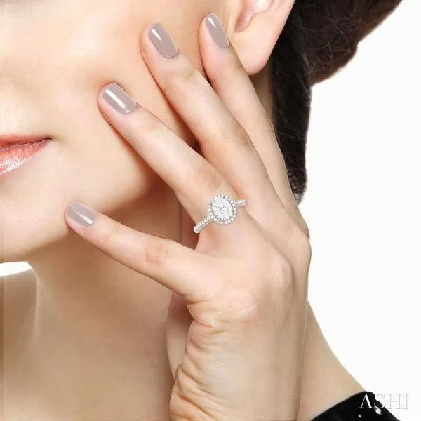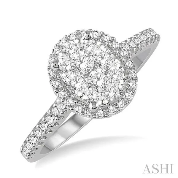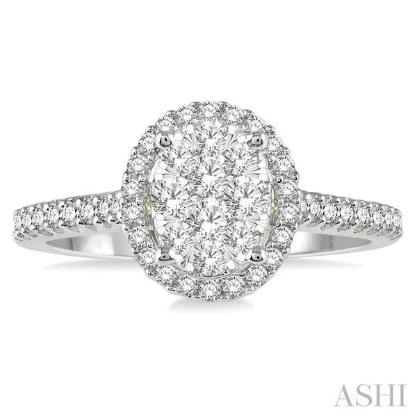 (319) 752-31961/2 Ctw Round Diamond Lovebright Oval Shape Halo Engagement Ring in 14K White and Yellow Gold