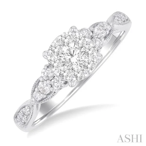 (319) 752-31961/2 Ctw Round Shape Lovebright Carved Shank Round Cut Diamond Engagement Ring in 14K White Gold