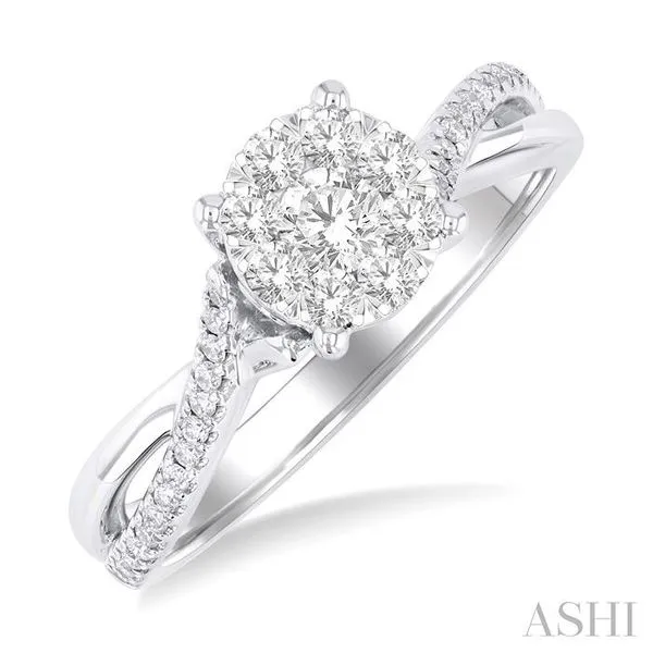 (319) 752-31961/2 Ctw Round Shape Lovebright Split Entwined Shank Round Cut Diamond Engagement Ring in 14K White Gold