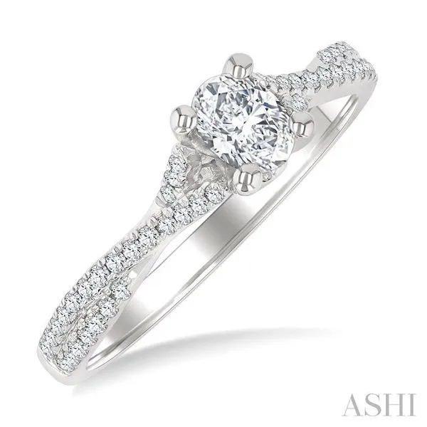 (319) 752-31961/2 Ctw Split Criss Cross Round & Oval Cut Diamond Engagement Ring With 1/3 Ctw Oval Cut Center Stone in 14K White Gold